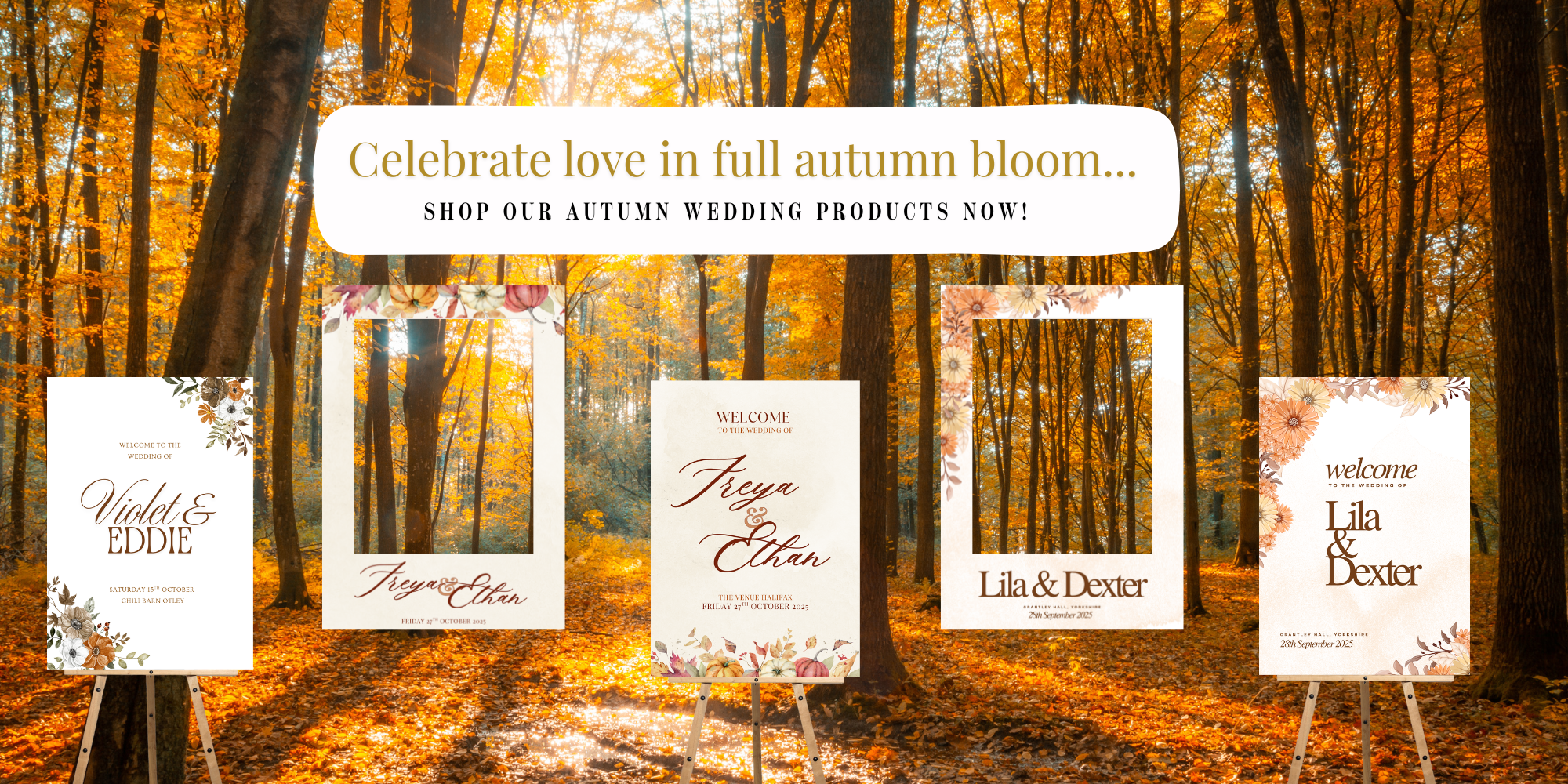 Personalised Autumn Wedding Selfie Frame | Rustic Fall Wedding Photo Booth Prop | Custom Names, Venue & Date | Boho Pumpkin / Foliage Design